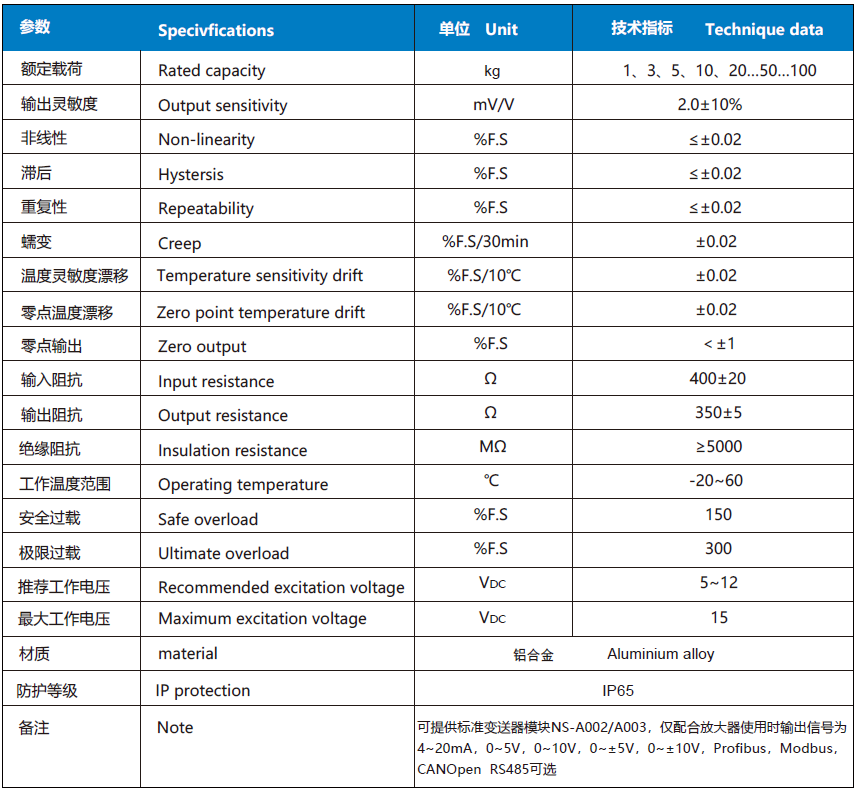 NS-TH5 系列稱重傳感器,采用優質鋁合金制作;