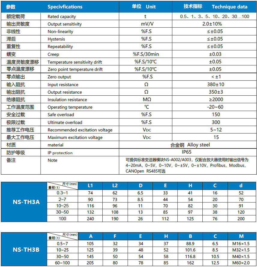 NS-TH4 系列稱重傳感器采用懸臂剪切結構;