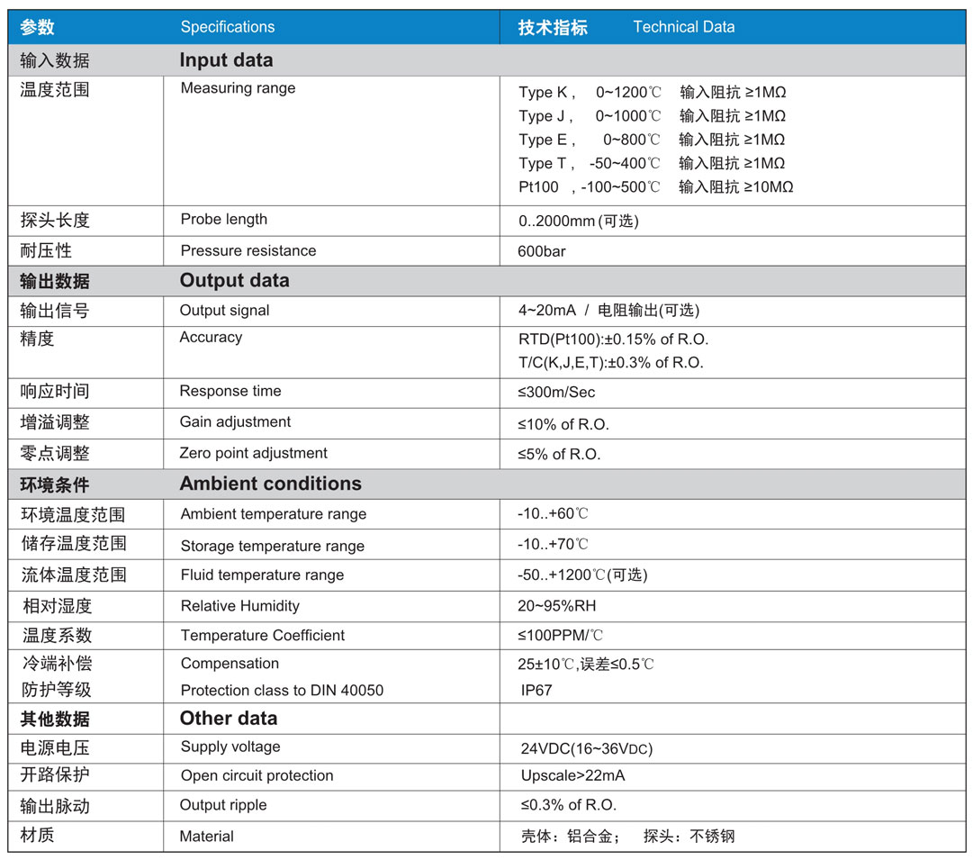 適宜于安裝在裝配式溫度傳感器無法滿足要求場合和環境比較惡劣的場合